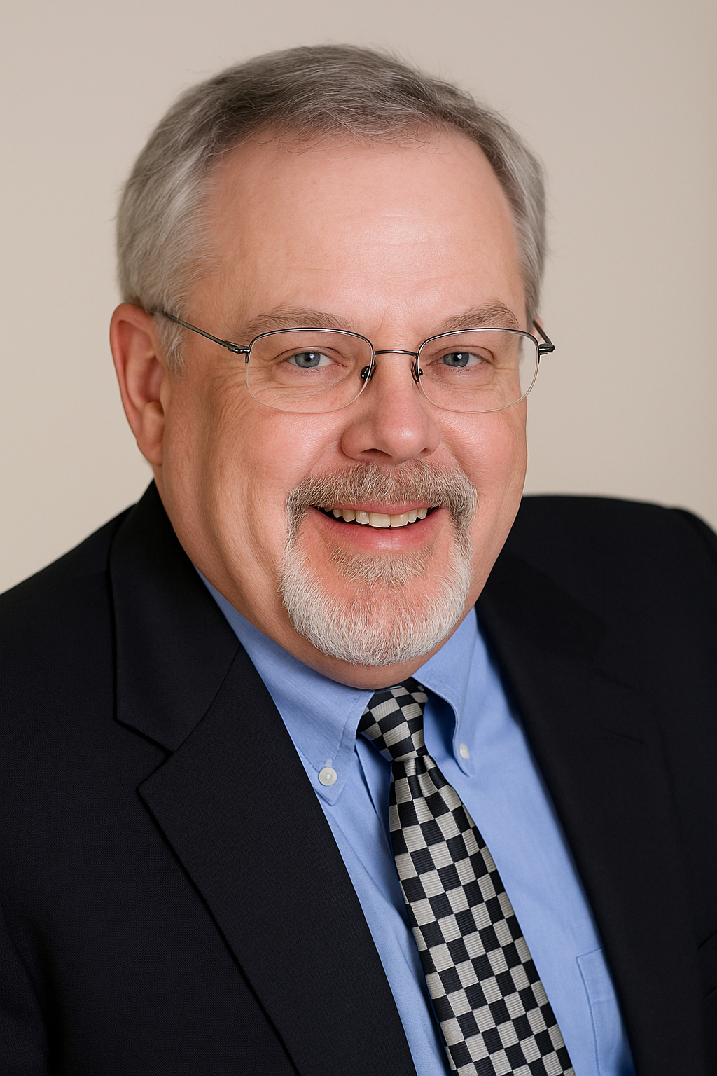 Portrait of Del Heles, President & CEO of Computer Market Research, Ltd., wearing a suit, blue shirt, and checkered tie, smiling against a neutral background.